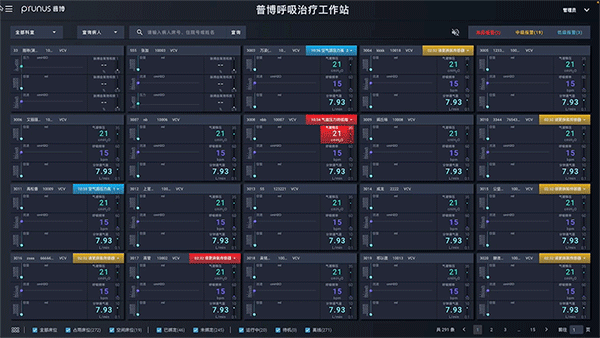 普博呼吸治疗工作站是一款以中央监护为基础、以患者管理为中心的中央工作站信息系统。系统利用医疗物联网技术,通过有线或无线网络获得呼吸机设备的呼吸波形、呼吸环图、监测参数等信息,实现对患者呼吸治疗的集中监护和管理。