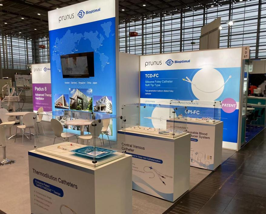Noticeably, Bioptimal, the new subcompany of Prunus through the acquisition last year, also shared the exhibition booth with Prunus bringing its advanced medical consumables including tip cystic dilatation foley catheter, control and prevention of infection foley catheter, central venous catheter, Biotrans blood pressure transducers, bipolar pacing catheter and so on. The predecessor of Bioptimal is Biosensor international. Founded in 1990, Biosensor has been engaged in the R&D, production and sales of intensive care interventional medical consumables for nearly 30 years. The acquisition by Prunus is intended to extend and broaden Prunus solutions for OR, ICU and emergency.