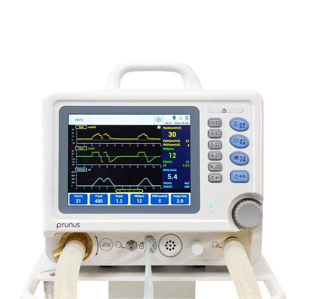 Prunus's patented DualPAP® (Dual Level Positive Pressure Ventilation) mode provides positive pressure ventilation to patients at two levels of pressure (high pressure phase and low pressure phase), with pressure support (PS) set at both pressure levels, exercising the patient's respiratory function and reducing dependence on the ventilator.