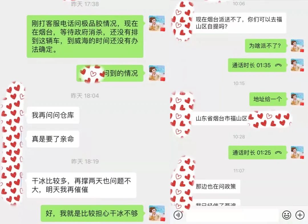 终于在4月5日抵达烟台。原以为可以松一口气,更糟糕的情况出现了。4月6日上午,又被通知,烟台地区无法派送。