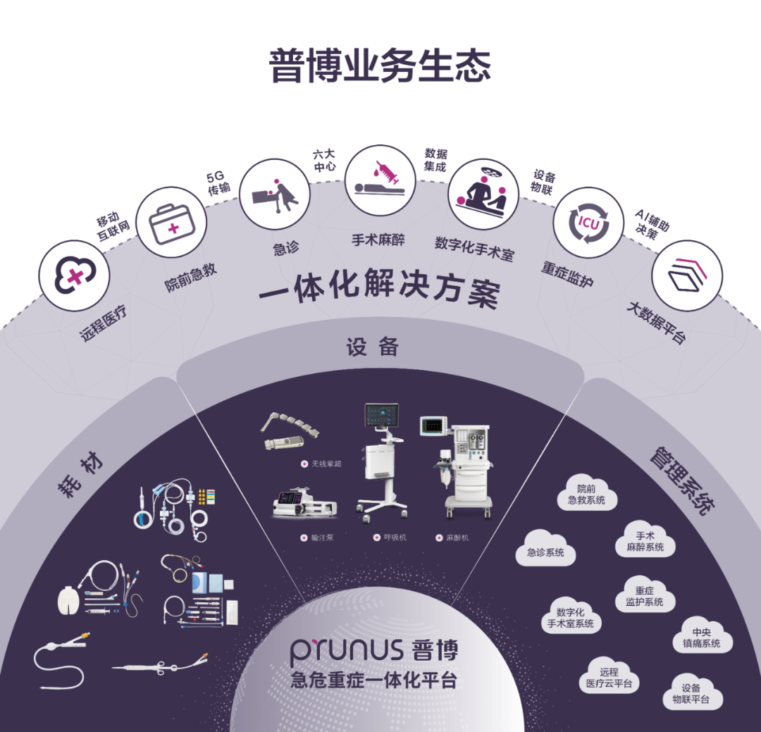 2021年1月,普博收购了高附加值耗材厂家世界著名品牌新加坡柏盛集团(BIOSENSORS),填充了国内企业在急危重症等领域高端耗材的空白,同年8月,完成对国内某信息化平台公司的收购,推动智慧医疗产品体系和业务落地,实现“设备+耗材”、“大数据+IoT”的双模式创新。