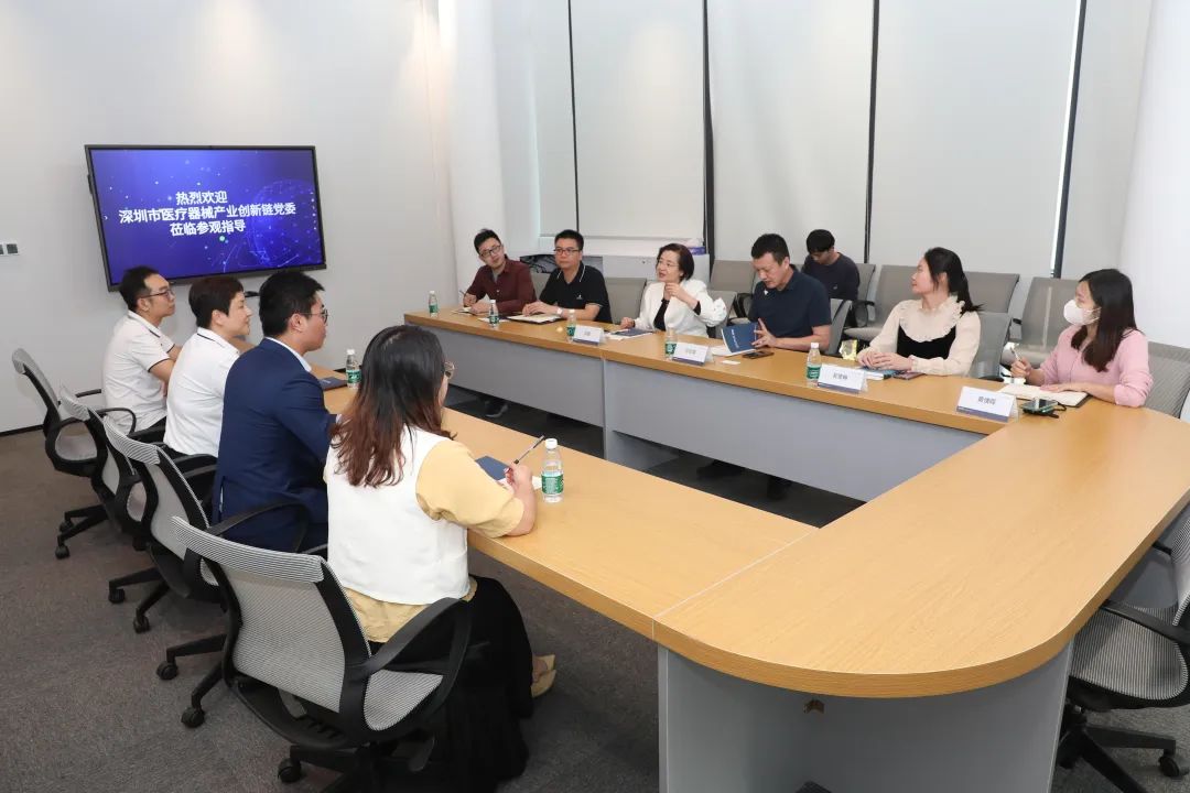 11月24日下午,深圳市人大常委、原科创委党组书记、一级巡视员、市医疗器械产业创新链党委(筹)第一书记邱宣莅临普博医疗调研指导工作,深圳市医疗器械行业协会副秘书长马吉喆等陪同参观。普博医疗董事长赖春红带领公司产品部、市场部、总经办等相关部门,热情接待了邱宣书记一行。