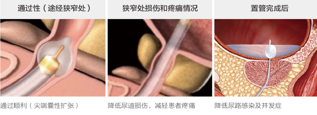 球囊柔性扩张尿道狭窄部位,能减少对尿道的损伤或感染。