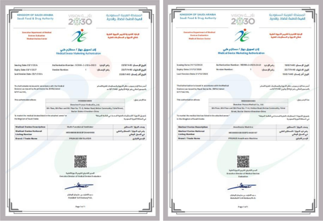 近日,Pumila、Boaray系列麻醉机和Padus系列呼吸机获得沙特MDMA证书,首次获得沙特市场的准入资格,其将为普博开辟沙特及周边市场提供新的助力。